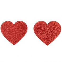 Punaiset, kimaltelevat sydäntarrat on helppo kiinnittää paikoilleen nännien päälle, jossa ne vangitsevat kaikki katseet.