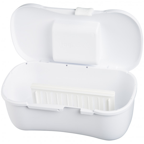 Joyboxxin hygieenisessä säilytyslaatikossa lelusi pysyvät siististi hyvässä tallessa ja turvassa. Tämä tilava, valkoinen muovilaatikko on valmistettu kierrätettävästä materiaalista.
