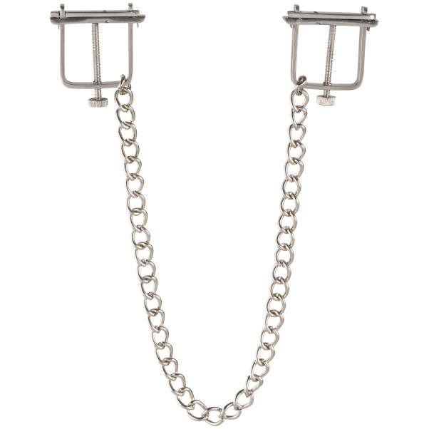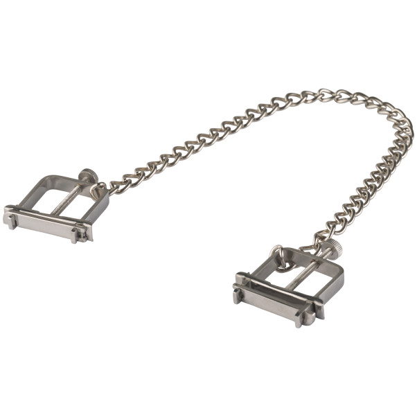 Kiinteät teräksiset nipistimet on yhdistetty ketjulla, josta vetämällä annat lisästimulaatiota herkille nänneille.