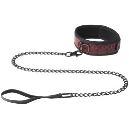 Kaulapannan ulkopintaa koristavat syvänpunaiset kohokuviot, ja sisäpuoli on pehmustettu miellyttävän tuntuisella neopreenillä. Säädä karmiininpunainen kaulapanta sopivaksi soljella, ojenna talutushihna kumppanillesi ja anna hänen johdattaa sinut nautintojen maailmaan.