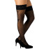 Rusetit johdattavat katseen ylöspäin aina kauniiseen pitsireunaan saakka, josta ei olekaan enää pitkä matka itse aarteeseen. Koristeelliset linjat pidentävät jalkojasi, kun taas joustava reuna pitää sukat paikoillaan.