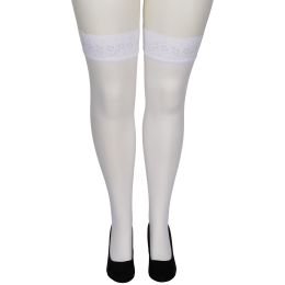 NORTIE Sage Plus Size Valkoiset Stay-up Sukat Pitsireunalla ja Takasaumalla