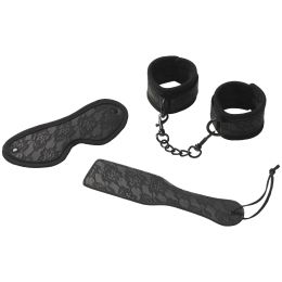 Tämä ylellinen setti sisältää kaiken tarvittavan, jotta pääsette tutustumaan toistenne kinkyihin puoliin. Kaikissa setin osissa on kauniilla pitsillä koristeltu pinta, joka tuo leikkeihin aistillisen vivahteen.