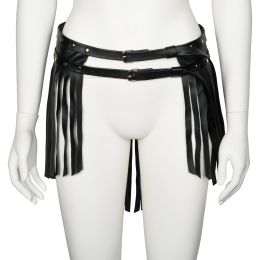 Pehmeät nauhat lepäävät takamusta vasten ja heiluvat viettelevästi liikkuessasi niin, että tarkkasilmäisimmät saavat anteliaan vilauksen suloistasi. Vyötärönauhan metalliset yksityiskohdat ja soljet antavat hameelle särmää.