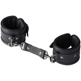 Kietaise pehmustetut kahleet ranteiden ympärille, säädä ne sopivan kokoisiksi ja kiinnitä soljilla. Voit myös yhdistää rannekahleet toisiinsa niihin kuuluvalla liitosremmillä, joka on helppo napsauttaa kiinni tai irti tarpeen mukaan. Remmin avulla voit sitoa kumppanisi esimerkiksi huonekaluun.