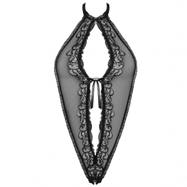 Obsessiven edestä avoimessa teddyssä näytät väkisinkin jumalaisen seksikkäältä. Haaraton teddy jättää selkäsi mahdollisimman paljaaksi.