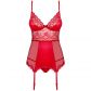 Setti sisältää punaisen chemisen, joka on valmistettu pehmeästä, aavistuksen läpikuultavasta materiaalista. Punainen pitsi koristaa kuppeja sekä ylävatsaa ja -selkää jatkuen myös chemisen alareunassa.