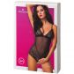 Teddy on valmistettu pehmeästä, sileästä kankaasta, ja siinä on geometrisesti suunniteltua pitsiä, joka korostaa muotojasi. Pieni metallipala rintojen välissä kiinnittää varmasti kumppanisi huomion, kun loistat tässä upeassa, läpinäkyvässä asussa.