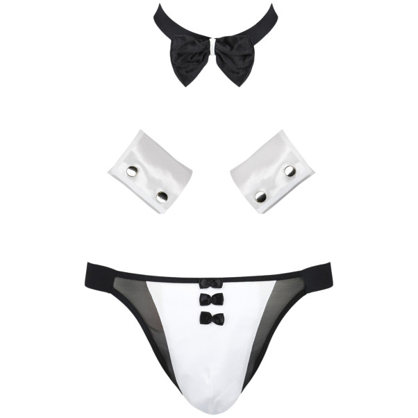 Pukeudu Passionin Alfred-hovimestariasuun ja valmistaudu palvelemaan kultaasi läpi koko yön. Tyylikäs kolmiosainen setti sopii täydellisesti tuhmien fantasioiden toteuttamiseen.