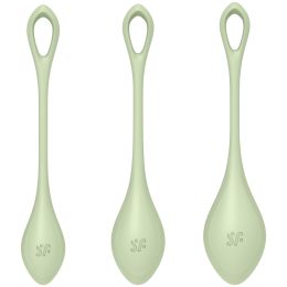 Satisfyerin Yoni Power 2 Geishakuulasetissä on kaikki mitä tarvitset lantionpohjan lihaksien treenaamiseen. Setti sisältää kolme erikokoista ja -painoista kuulaa soikealla muotoilulla, jonka uritettu rakenne antaa lisästimulaatiota.