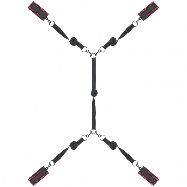 Bed Restraints -setti on osa California Exotics -tuotemerkin Scandal-sarjaa, joka on valmistettu upeasta punamustasta kuviokankaasta ja jonka jokaiseen yksityiskohtaan on kiinnitetty huomiota. Settiin kuuluu neljä säädettävää kahletta, jotka on pehmustettu sisäpuolelta, jotta niitä on mukava käyttää. Kahleet kiinnitetään tukevasti ranteisiin ja nilkkoihin tarranauhalla.