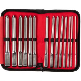 Teräksinen Dilataattorisetti sisältää 14 erikokoista virtsaputken laajenninta.